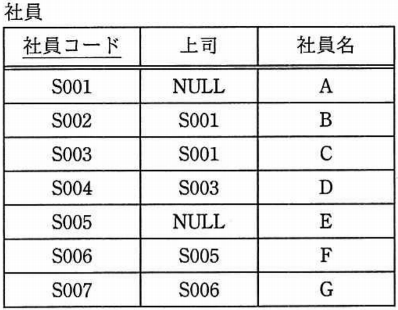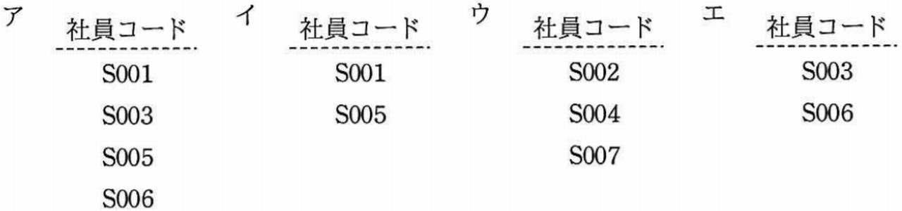 “社員”表に対して, SQL文を実行して得られる結果はどれか。 ここで, 実線の下線は主キーを表し,表中の'NULL'は値が存在しないことを表す。